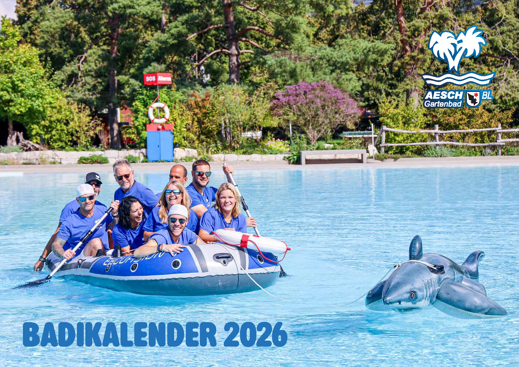 Auch diesen Sommer lieferte das Gartenbad-Team auf dem digitalen Dorfplatz Crossiety in der Gruppe «Gartenbad Aesch-Pfeffingen» witzige Einblicke in den Badi-Alltag. Diese gute Stimmung wird auch im Badikalender 2026 schön illustriert.